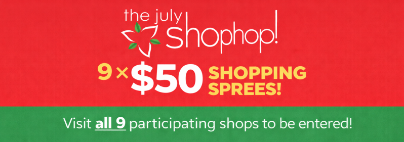 During your Shop Hop, visit at least 9 participating shops and be entered to win one of 26 - $50 shopping sprees!