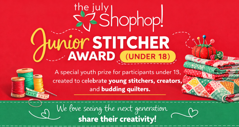 NEW - Junior Stitcher Award (Under 18) A special youth prize for participants under 18, created to celebrate young stitchers, creators, and budding quilters. We love seeing the next generation share their creativity!