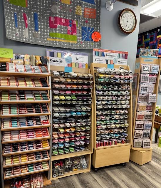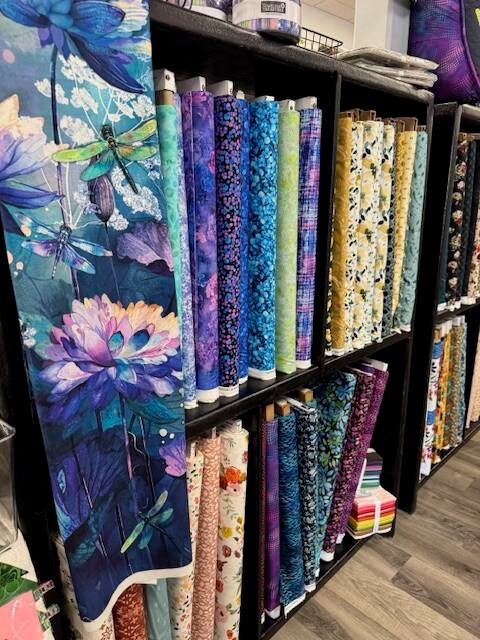 Our Shop offers a large selection of fabric for any style, colour or theme you desire. We have a huge notion wall where we are dedicated to have the tools you need. Kits for our displayed quilts are always available and we even have a wide variety of wide back fabrics to complete your quilt. If you’re not available to come shopping in person, we have an easy to use website.